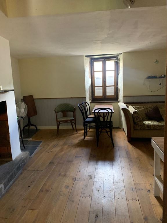 Entrée de 5,20m2, distribue en face un séjour de 20m2 avec poêle à bois, à gauche une cuisine carrelée (Sud) suivie d’une salle d’eau à refaire (lavabo, WC et douche), et une buanderie de 5,60m2 (sol ciment), un escalier dessert une antichambre de 5m2 et une chambre de 11,50m2.