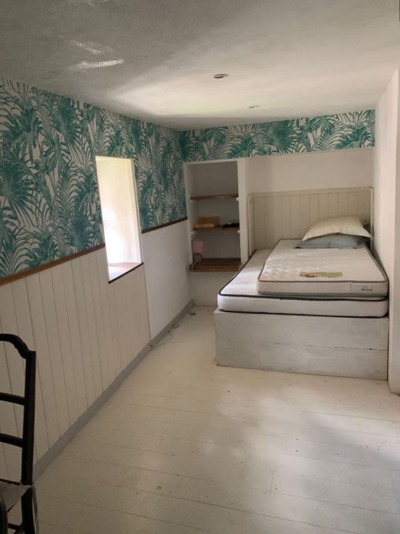 Un autre escalier amène à un palier de 1,70m2 qui distribue chambre de 11,30m2 et une pièce en travaux de 10,60m2, entre les deux une salle d’eau de 2,80m2 (cabine de douche, meuble-vasque, WC).