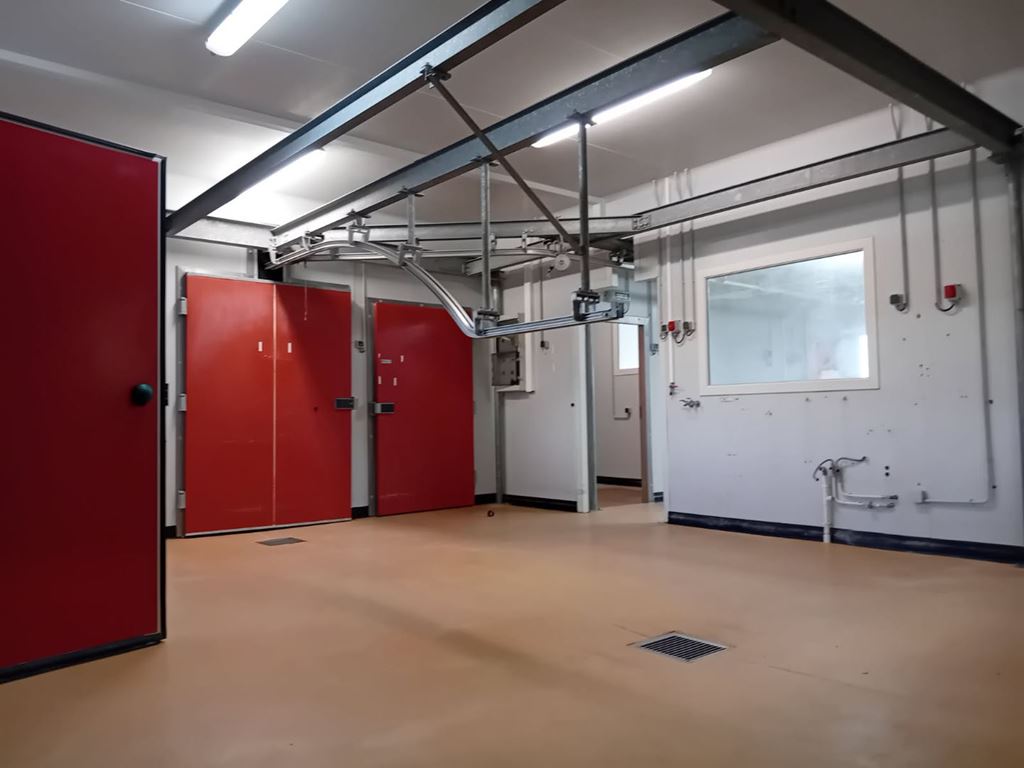 Mur et toiture isolés, accès au tout à l'égout.Un hall d'accueil, une salle du personnel, 7 chambres froides, ateliers, 2 vestiaires, 2 WC, une cour intérieure environ 50m2.Prix : 108000 euros, honoraires d'agence inclus.