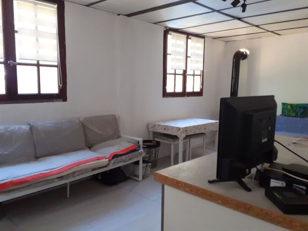 un séjour de 14m2, cuisine 9m2, salle d'eau de 5,40m2 (douche, lavabo, WC), chambre de 9m2.
