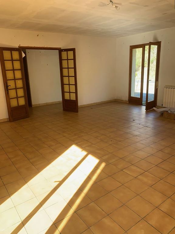Un escalier intérieur permet d’accéder au sous-sol complet de 120m2 avec portail motorisé. (Une salle de bain rudimentaire aménagée dans un coin du sous-sol).